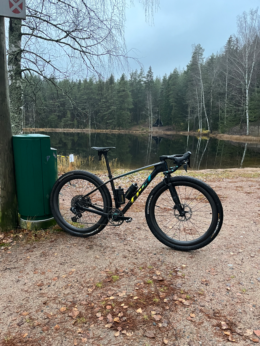 Some open mold chinese hardtail non-boost frame. Rival/gx axs mullet, lightbicycle wg44 wheels, Truvativ 165mm carbon cranks, sigey axo pm, 44t chainring, fox 32tc fork, racekings, 90/370 cockpit
