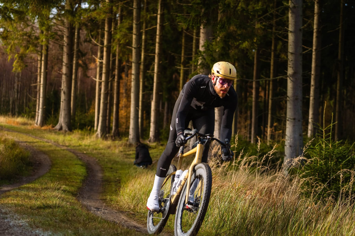 Fara F/Gravel size 59 Fulcrum Sharq wheels (62 mm depth, 25 mm internal / 30 mm external) Thunder Burt tires: 2.25 front (54 mm) and 2.1 rear (52 mm) SRAM AXS Force E1 drivetrain with GX Eagle, Novaride OSPW and 48T x 10–52 gearing Fara modular cockpit 400 mm x 120/130 mm (prototype) Enve 27.2 seatpost, Fizik Vento Argo R3 Adaptive saddle. Apidura aero bag system (drilled hole in the bags to use screw mounts) Favero Assioma MX pedals Coros Dura computer. Total weight: 9.5 kg